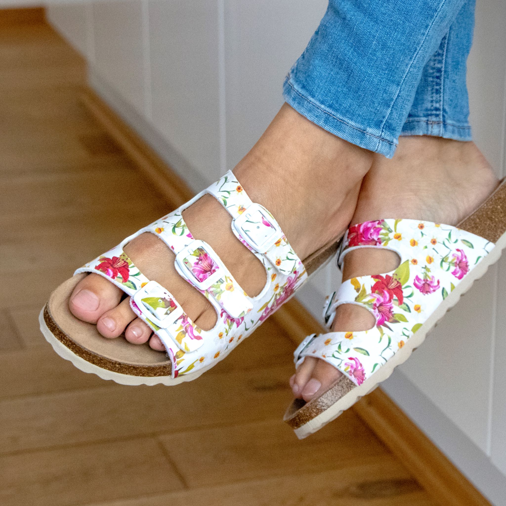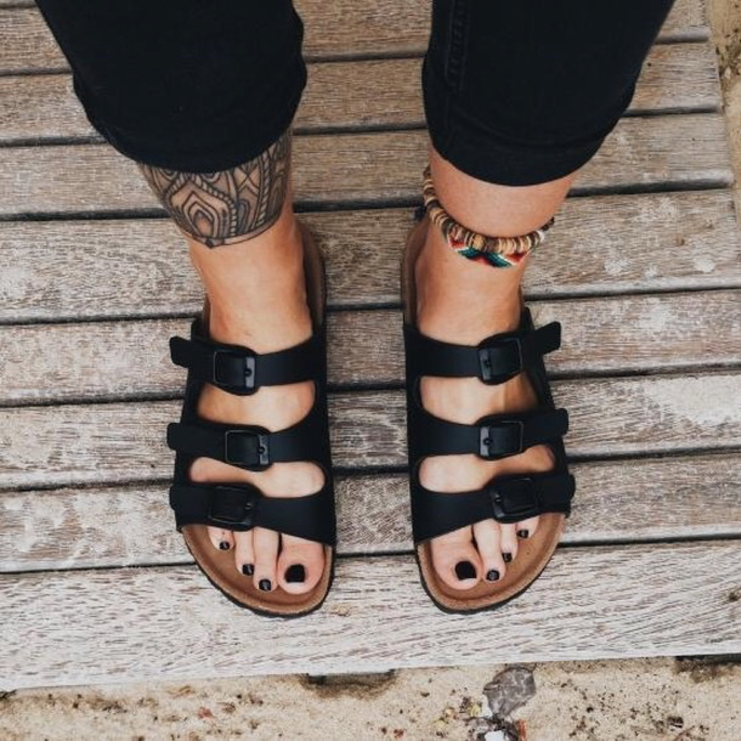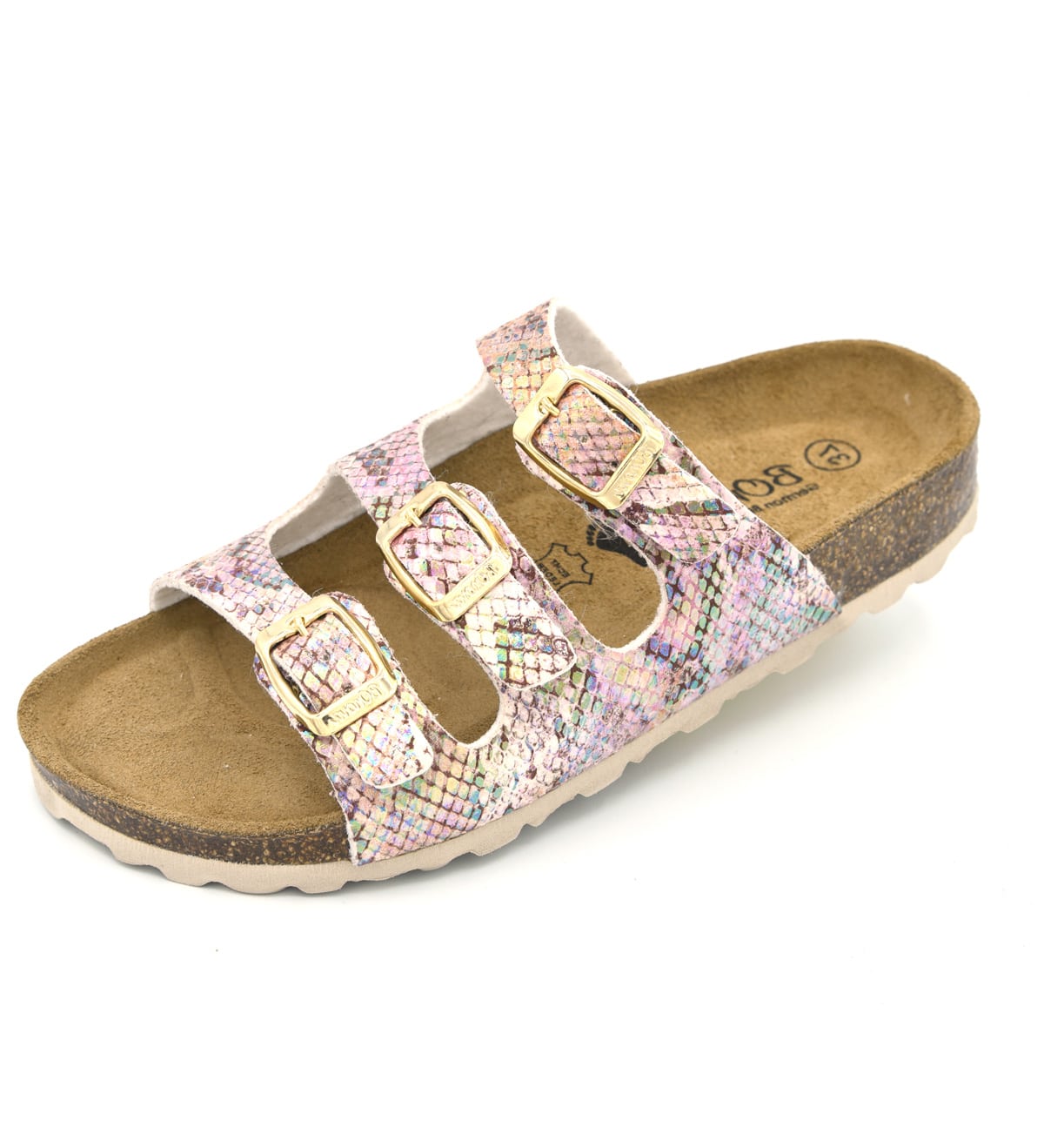 PASSFORM Die Riemen können mithilfe der Schnallen individuell an den Fuß angepasst werden. Die Dornschnalle besteht aus nickelfreiem Metall. Wenn Du zwischen zwei Größen schwankst, empfehlen wir Dir die kleinere zu wählen.